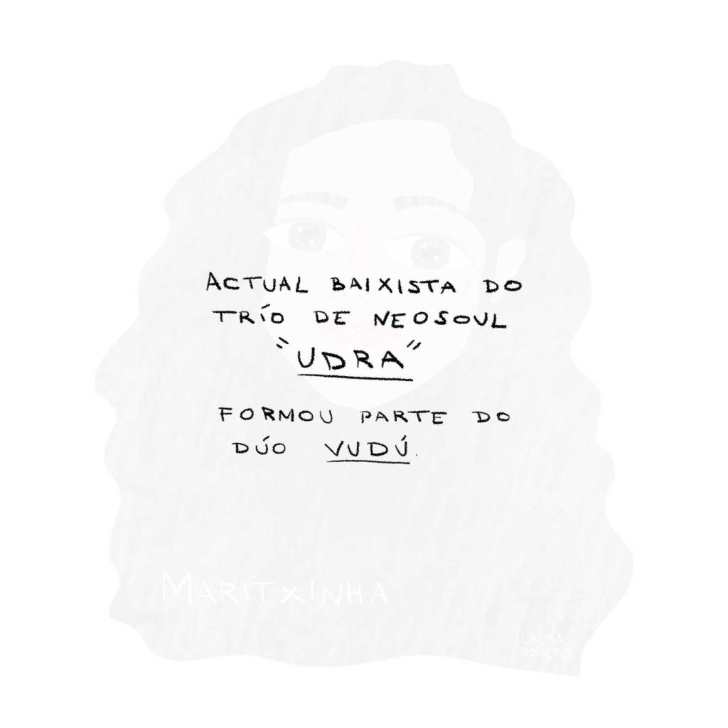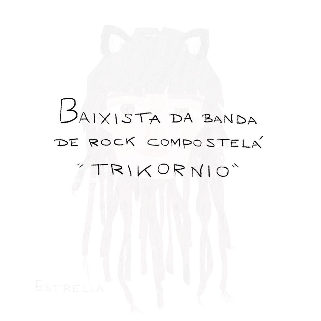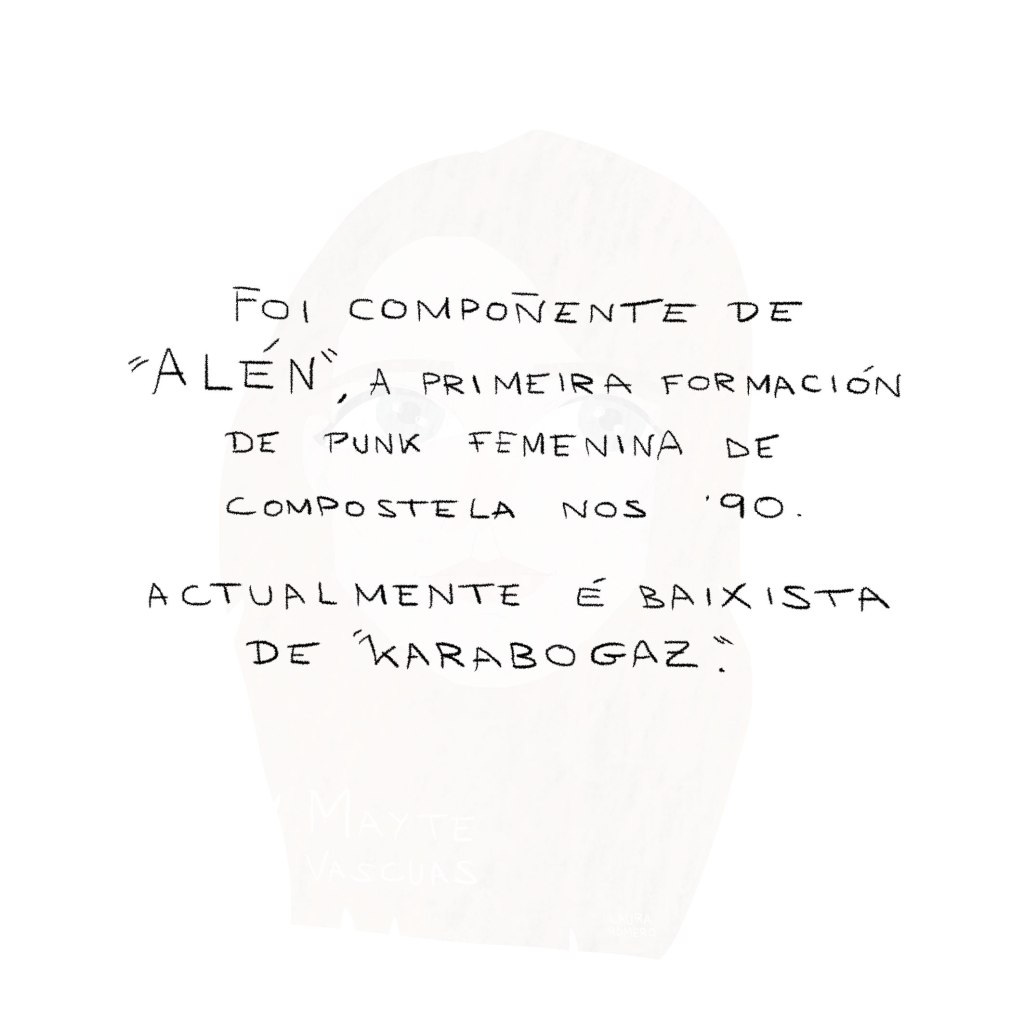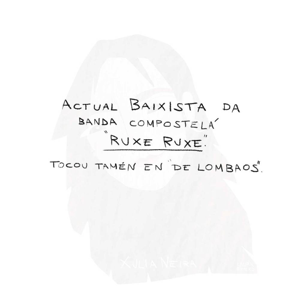 Persoalmente, disfrutei moito debuxando esta selección, por ser o baixo o meu instrumento e por estar tamén o espazo (o do baixo eléctrico) bastante masculinizado. Mais pouco a pouco vai mudando a cousa, non credes?
