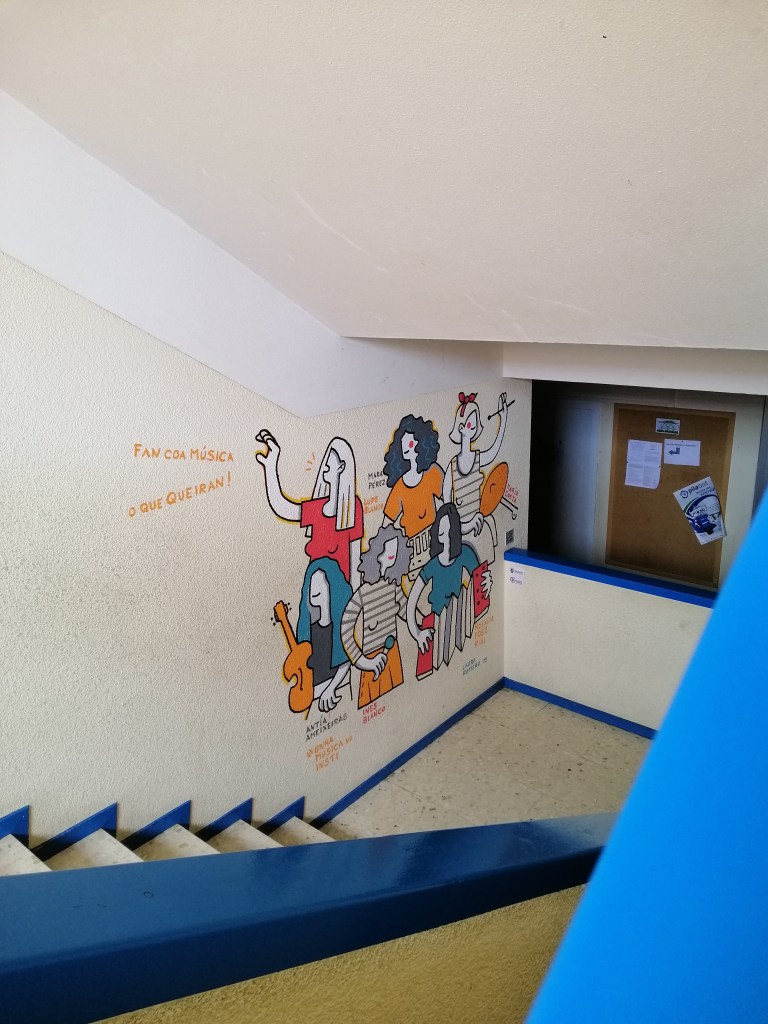 A peza foi realizada nun dos espazos que hai xunto ás escaleiras. Foi tamén o centro onde se realizou o pequeno documental sobre o proxecto, grabado e editado por Xosé A. Bocixa.