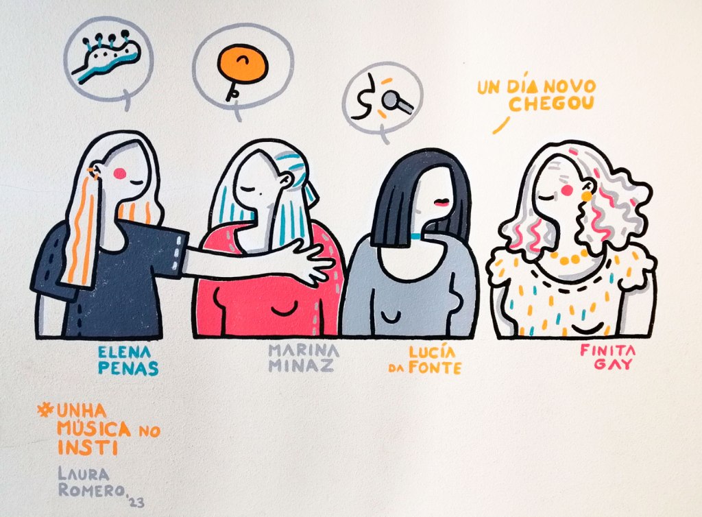 No grupo Nuada, fundado en Teixeiro en 2015, destacan dúas músicas con moitas ganas de contaxiar a súa paixón polo rock n’ roll en cada escenario da nosa terra: Elena Penas e Marina Miraz. Tocan o baixo e a batería, respectivamente, e combinan a súa formación musical (coma Marina, que se iniciou na escola de música de Guitiriz) cun espírito autodidacta que as levou a xuntarse cos seus compañeiros Brais e José co nome de Nuada, comezando así unha destacada traxectoria dando concertos por todo o país e editando o seu primeiro disco, Deconstruír e refacer, en 2021.