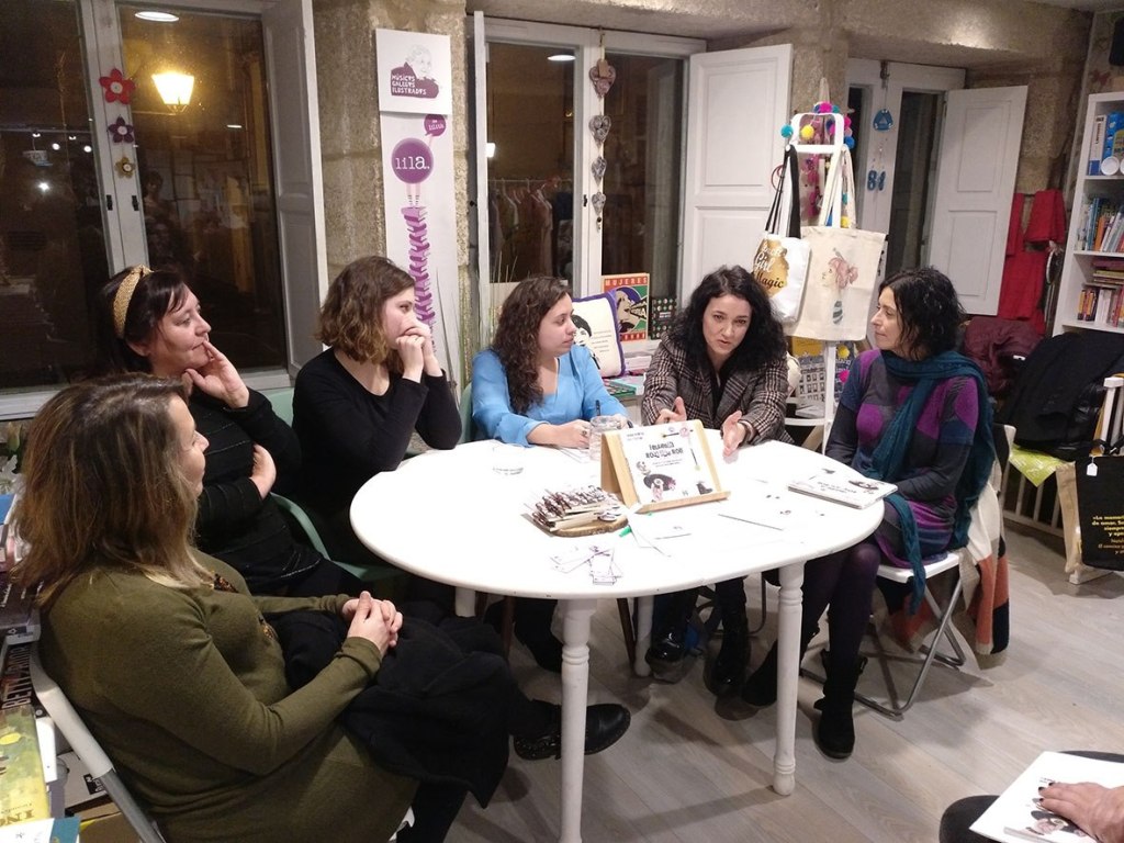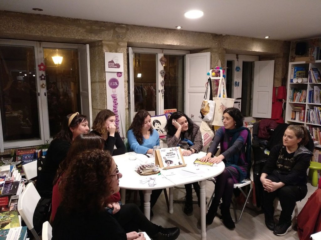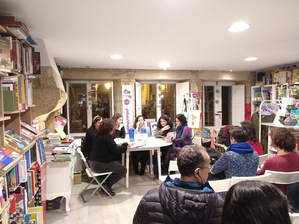 05/02/2020. Presentación de Ferreñas & Rock and Roll na libraría Lila de Lilith (Compostela) con Guadi Galego, Maribel dos Anjos (Alén) e Uxía.