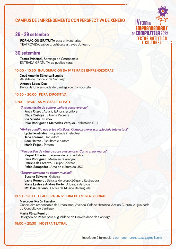 _VENRES 30 DE SETEMBRO. Participación na xornada Woman Emprende, dentro da mesa «Emprendemento no sector musical». Terei stand na feira! +info aquí ou aquí.