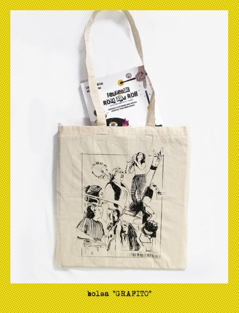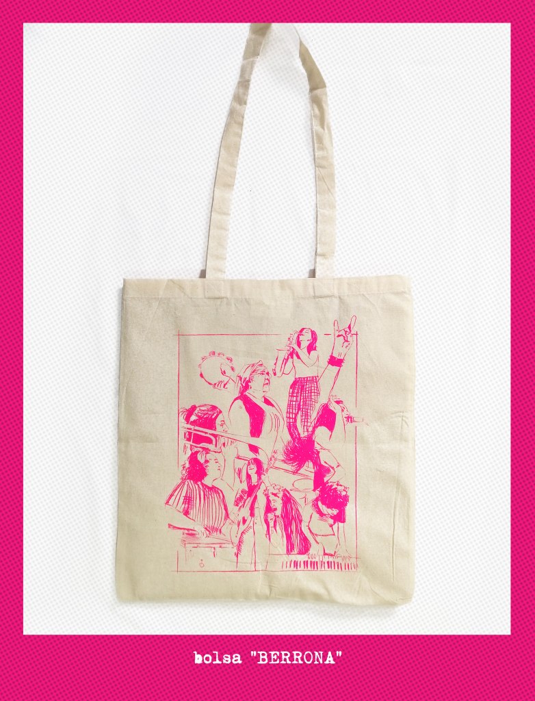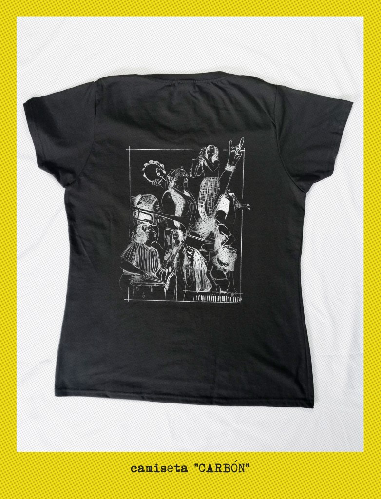 E no debuxo quen está? Na composición aparecen Ailén Kendelman e V (Bala) ás baquetas, Paula López (Dakidarría) ao trombón, a señora Carmen das Malvela (que nos deixou no 2015), Xulia (Ruxe Ruxe) ao baixo, Alba Moledo (Liska) ao saxo, Aida Saco ao piano, Nastasia Zürcher e Paula Romero ao micro e dúas mans «anónimas».